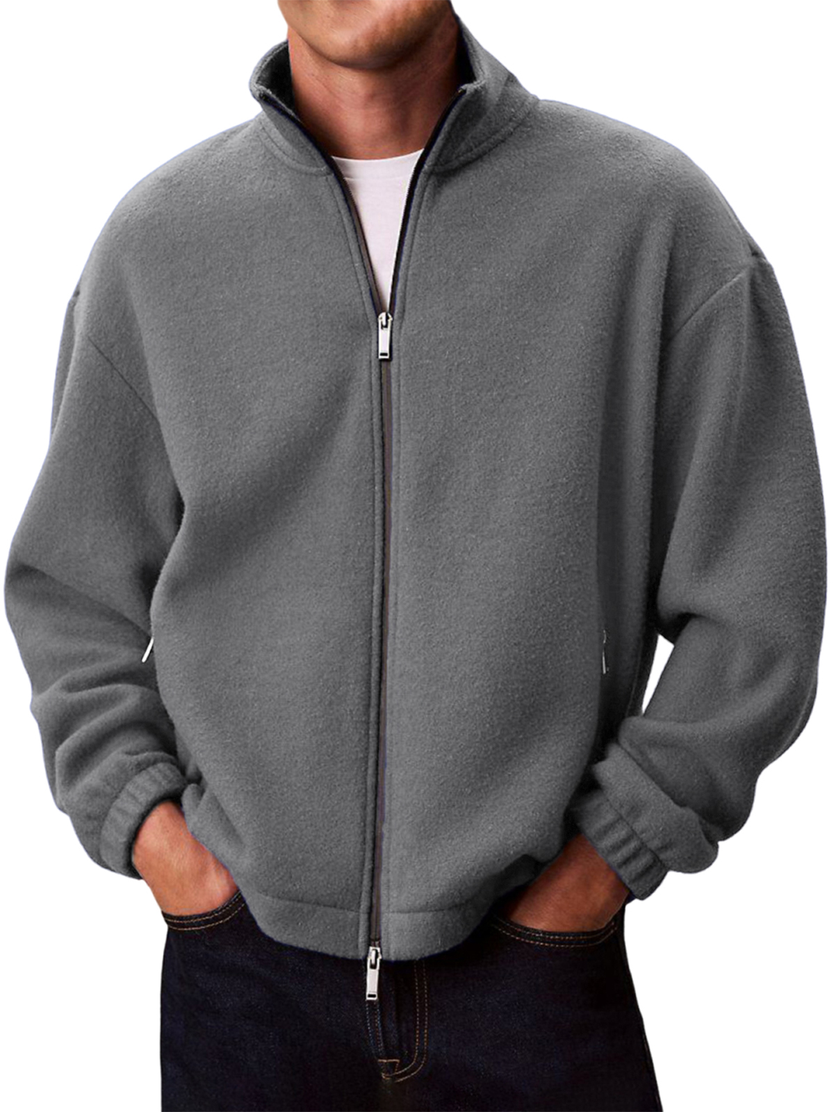 Men's Warm Polar Fleece Jacket Solid Color Jacket