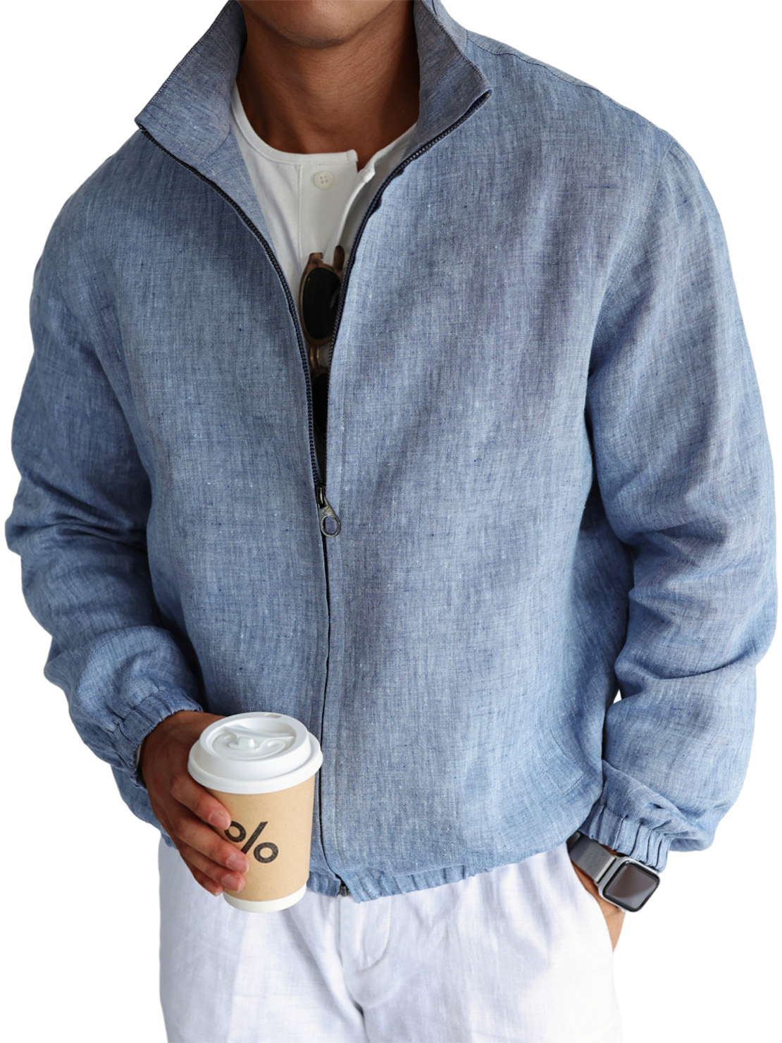 Men's Simple Casual Cotton And Linen Stand Collar Zipper Jacket