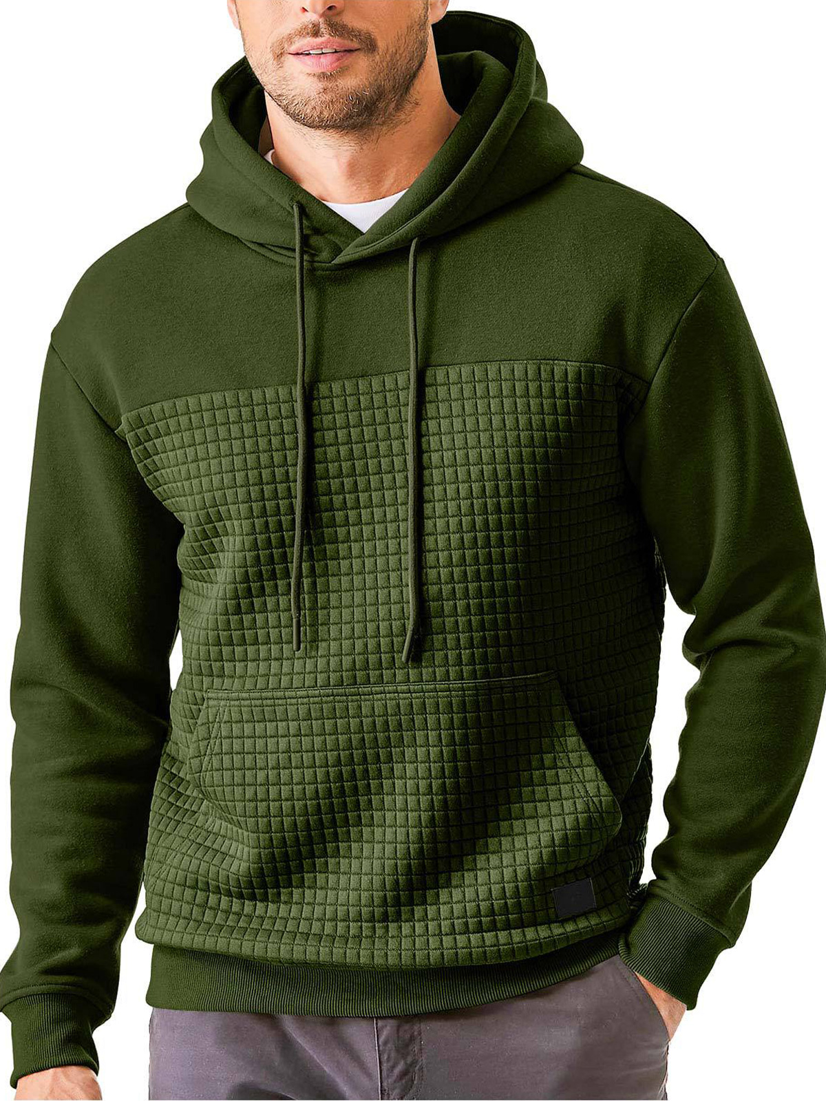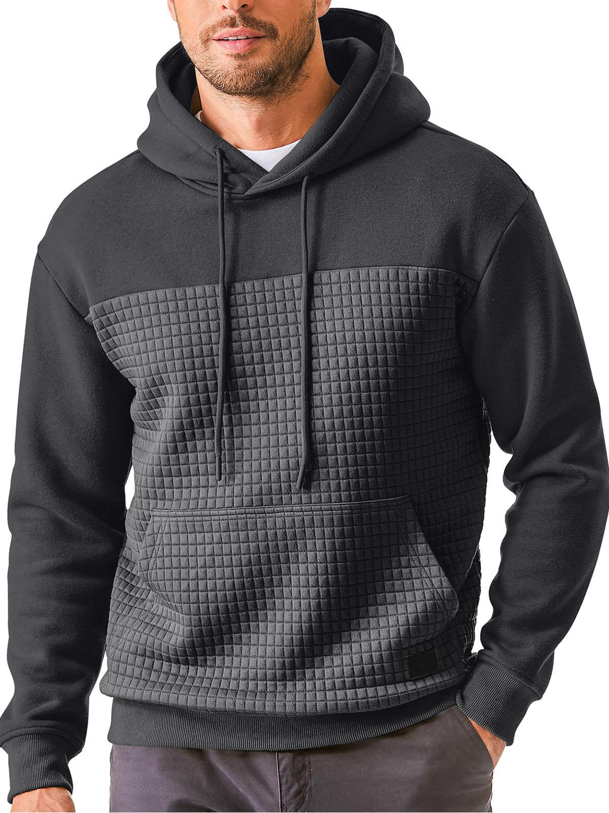 • Men's Casual Waffle Color Block Pocket Hooded Sweatshirt